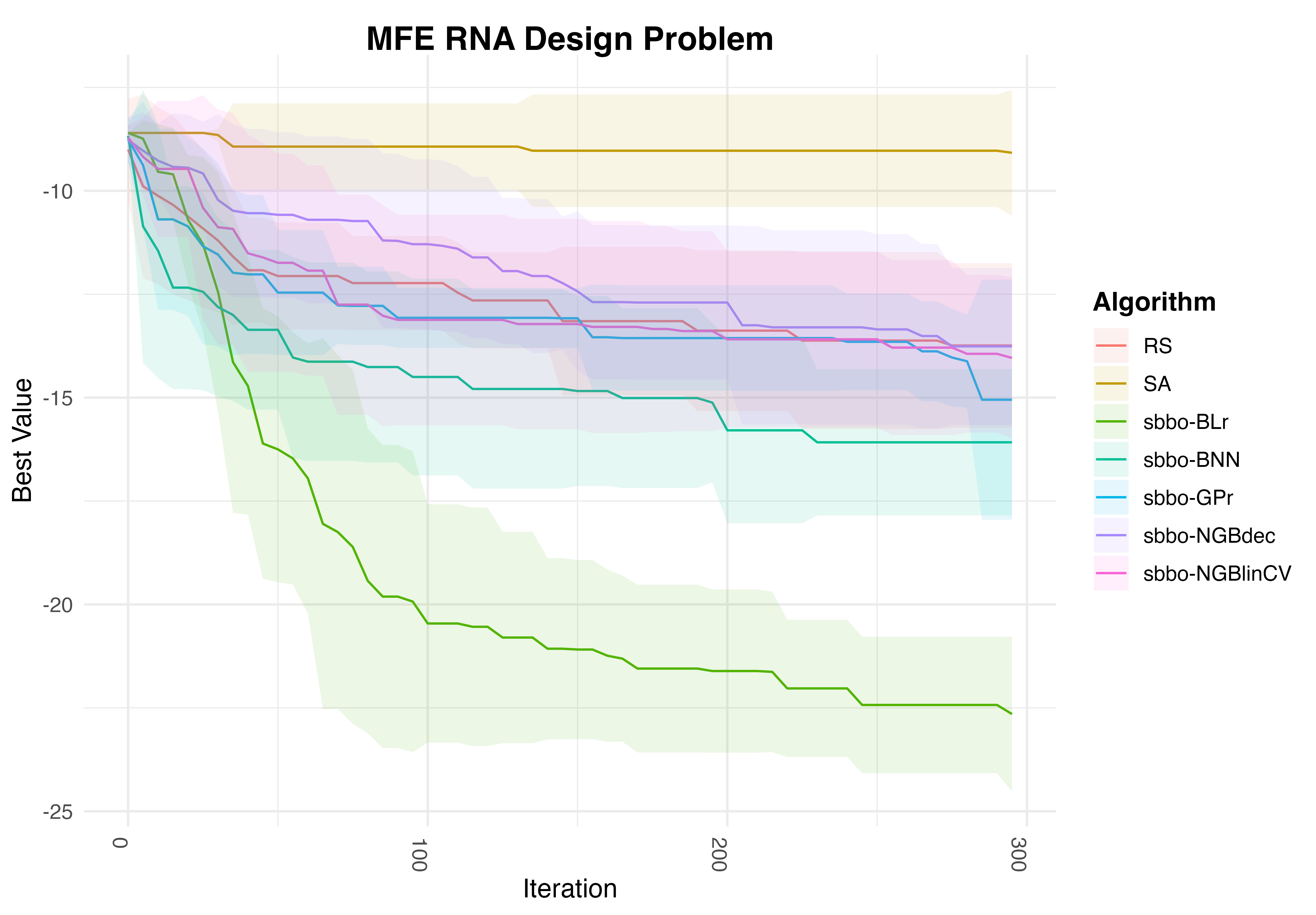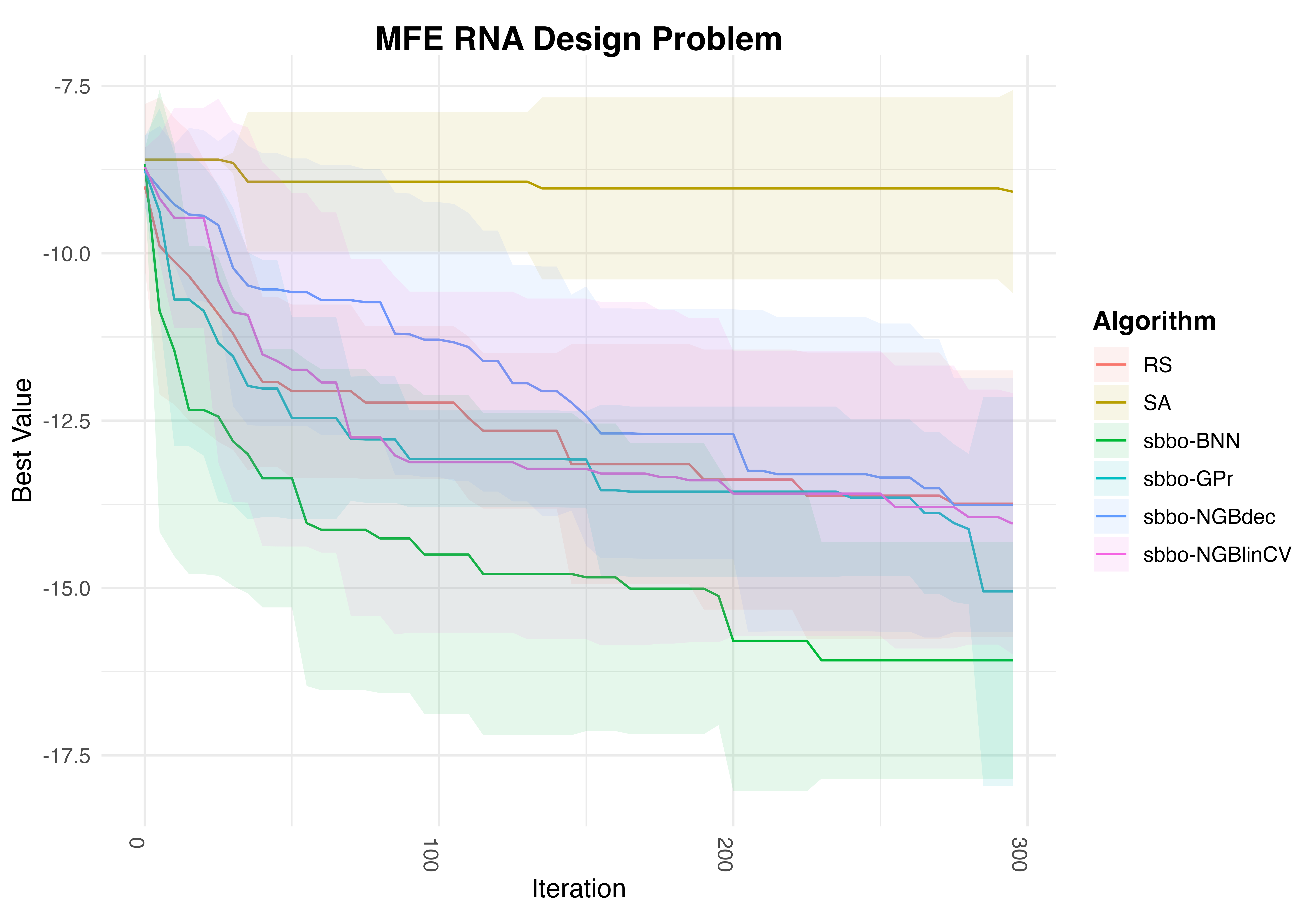 Use SBBO to find MFE RNA chain of lenght \(p\) with few energy evaluations